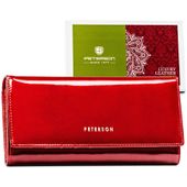 Portfel ze skóry naturalnej pokrytej na zewnątrz lakierem. Model zachwyca głębokim, czerwonym połyskiem, który dodaje mu wyrazistości i elegancji. Złote okucia oraz sygnowane logo producenta pullery zamków podkreślają jego luksusowy charakter, czyniąc go stylowym dodatkiem dla osób, które cenią szyk i klasę.