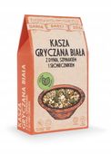 Producent sys tworzy proste w przygotowaniu, a jednocześnie zdrowe i pożywne dania na bazie zbóż, suszonych warzyw i owoców. Dobre jakościowo kasze i ryże połączone z ciekawymi kompozycjami warzyw to znakomity pomysł na szybki obiad. Jeżeli przygotujesz je w tradycyjny sposób, czyli udusisz danie w małej ilości wody, uzyskasz nie tylko aromatyczną potrawę, ale również zachowasz w niej bogactwo składników odżywczych. Kasza gryczana biała z dynią, szpinakiem i słonecznikiem. Kasza gryczana charakteryzuję się wysoką zawartością białka. Ponadto zawiera znaczące ilości cynku, miedzi, manganu, żelaza, potasu oraz witamin z grupy B. Dynia jest jednym z lepszych źródeł cynku. Cynk najlepiej przyswaja się z pestek dyni. Ponadto dynia charakteryzuje się wysoką zawartością witaminy B1, PP oraz beta-karotenu.
