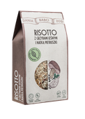 Ryż arborio 82%, grzyby suszone 4% (borowik, podgrzybek, maślak, koźlarz), płatki drożdżowe, cebula suszona, warzywa suszone (marchew, pasternak, por, natka pietruszki, natka SELERA, lubczyk), sól morska, pomidor suszony, czosnek suszony, tymianek.