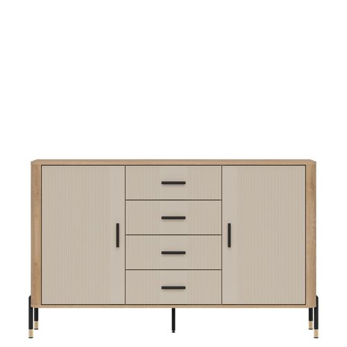 Komoda Dante DT09 Harmonia proporcji, styl i pojemność. Jest to propozycja dla tych, którzy szukają mebla będącego połączeniem elegancji, funkcjonalności i wyjątkowej dbałości o detale. Komoda została zaprojektowana z myślą o nowoczesnych przestrzeniach, w których styl idzie w parze z użytecznością. Mebel oferuje cztery symetrycznie rozmieszczone szuflady w centralnej części, które zapewniają szybki i wygodny dostęp do drobiazgów, odzieży czy dokumentów. Po obu stronach znajdują się zamykane szafki z półkami, idealne do przechowywania większych przedmiotów, takich jak książki, naczynia, kolekcje dekoracji czy akcesoria biurowe. Estetykę komody podkreśla kontrastowy design – matowe, czarne fronty dostępne w pięciu wariantach kolorystycznych zestawione z korpusem w naturalnym odcieniu drewna tworzą wyrafinowaną, a zarazem uniwersalną kompozycję kolorystyczną. do wyboru złote lub czarne uchwyty w minimalistycznym stylu oraz metalowe nogi o wysokości 18 cm w czarno-złotym wykończeniu dopełniają całości, dodając meblowi subtelnej elegancji i lekkości. Dante DT09 komoda, która definiuje styl Twojego wnętrza. Niezależnie od tego, czy stawiasz na funkcjonalność, czy design – komody DT09 dostarcza obu tych wartości. To mebel, który nie tylko organizuje przestrzeń, ale również stanowi jej wyjątkową ozdobę.