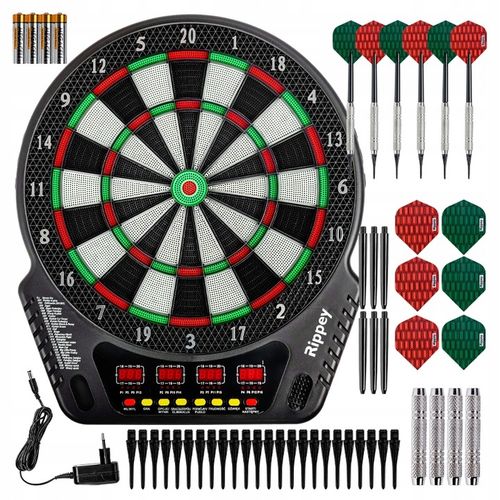 ✔️ Kompletny zestaw zawierający tarczę, 6 rzutek, zapasowe groty oraz zasilacz, zapewniający maksymalną wygodę użytkowania.