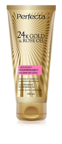 Silnie regenerujący i ujędrniający, luksusowy balsam do ciała z molekułami złota zapewnia intensywną pielęgnację, poprawia napięcie oraz elastyczność skóry. Przywraca właściwy poziom nawilżenia i dostarcza składniki aktywne odpowiedzialne za właściwe odżywienie i regenerację skóry.