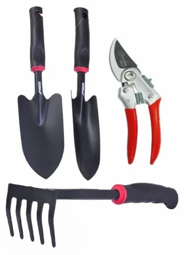 Zadbany ogród za sprzętem Dedra! Posiadanie pięknego ogrodu to marzenie wielu z nas. Zestaw 4 narzędzi ogrodowych Dedra odzwierciedla wysoką jakość i funkcjonalność, które pomogą Ci zadbać o każdą roślinę i zakątek w Twoim ogrodzie. W skład zestawu wchodzi:
