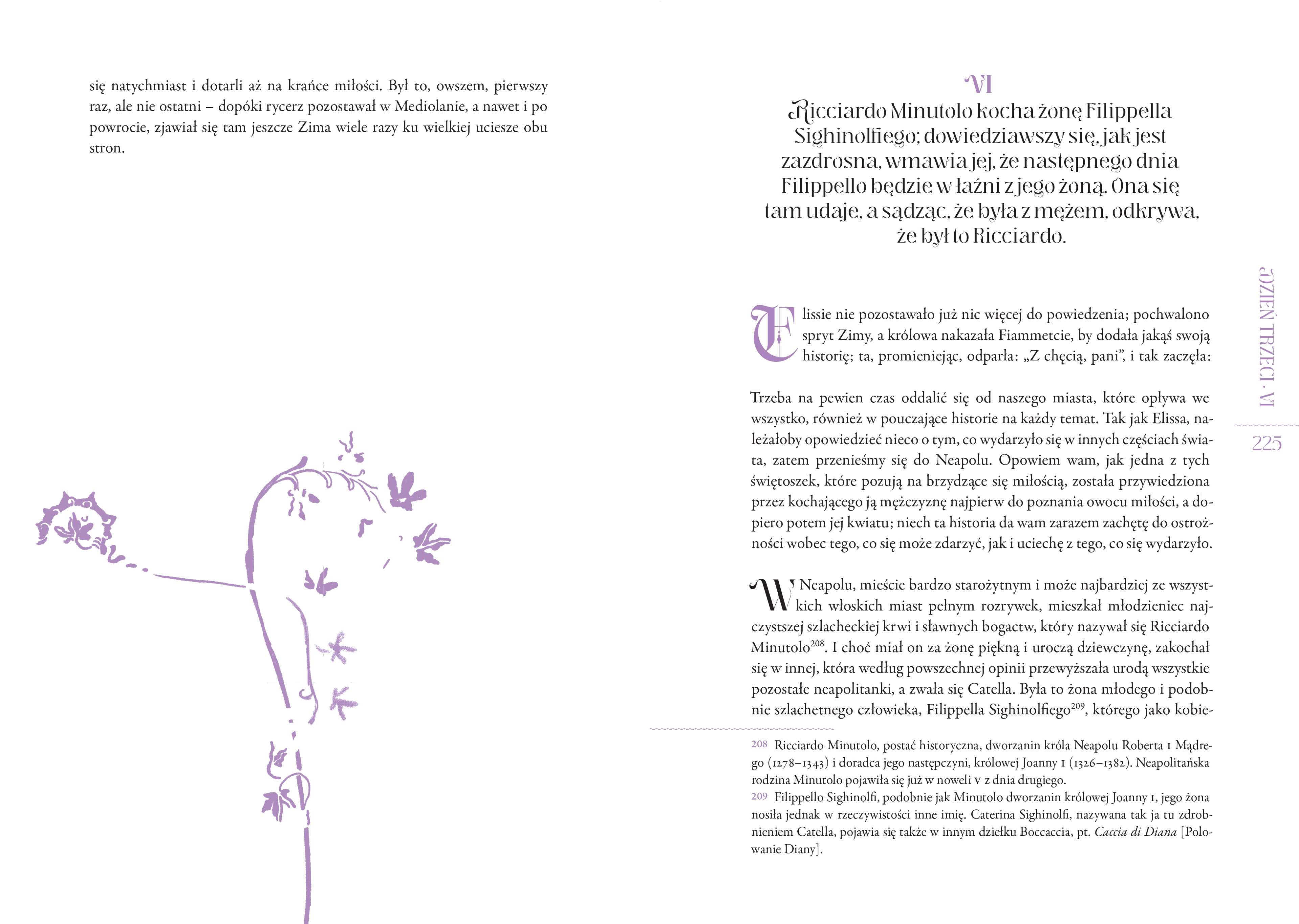Co sprawia, że Dekameron zachwyca od ponad sześciu stuleci? Jeszcze za czasów Boccaccia krążyły we Włoszech ogromne ilości kopii Dekameron, a Petrarka przełożył jedną z nowel na łacinę, dzięki czemu dzieło zyskało popularność w pozostałej części Europy. Sześćset lat później na duży ekran przeniósł je Pier Paolo Pasolini, za co został uhonorowany Srebrnym Niedźwiedziem, a w 2024 roku na Netflixie pojawiła się adaptacja serialowa. Dzieło Boccaccia o kunsztownej budowie szkatułkowej traktuje o grupie dziesięciorga ludzi, którzy chronią się w podmiejskiej willi przed szalejącą we Florencji dżumą. W czasie dziesięciu dni izolacji w ramach rozrywki opowiadają sobie historie na zadany temat. W ten sposób Boccaccio stworzył nowy gatunek literacki – nowelę – i zapisał się w historii literatury światowej. W tych krótkich formach odmalowuje obyczaje charakterystyczne dla włoskiego średniowiecza, a także daje wyraz zachwytu światem oraz bujnością życia ze wszystkimi jego namiętnościami. Nie unika pieprznych historyjek o miłości cielesnej, wychwala bystrość umysłu, spryt i przedsiębiorczość, za pomocą sarkazmu i drwiny piętnuje głupotę i zarozumialstwo, atakuje bezczynnych zakonników żyjących z jałmużny. Nade wszystko jednak zachęca do samodzielnego myślenia i wyciągania własnych wniosków. Nic dziwnego więc, że utwór na wiele lat trafił na indeks ksiąg zakazanych. „Wydanie w nowym tłumaczeniu – pierwszym od prawie stu lat – autorstwa Zofii Anuszkiewicz, z posłowiem Piotra Salwy. Śmiercionośna zaraza, zamknięcie, zbyt wiele wolnego czasu i potrzeba snucia historii. To wszystko jak nigdy wcześniej łączy nas z bohaterami Dekameron, którzy opowiadają o ludzkich pragnieniach, przywarach i cnotach. A w ich opowieściach wciąż jest tyle życia, że po wiekach możemy śmiało stwierdzić, że Boccaccio bez trudu wygrywa z Netflixem”. – Katarzyna Czajka-Kominiarczuk, Zwierz Popkulturalny Tłumacz: Zofia Anuszkiewicz, Piotr Szof