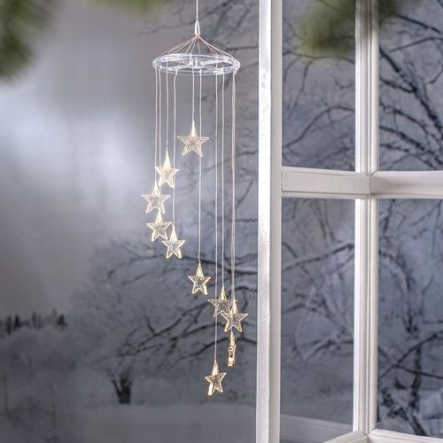 Ta wysokiej jakości dekoracja wisząca z gwiazdami LED z serii MOBILO model 857-37 emanuje delikatnym, ciepłym białym światłem, które subtelnie oświetla przestrzeń i wprowadza harmonijny, przytulny klimat. Z 10 diodami LED w eleganckiej, transparentnej formie, ta ozdoba gwarantuje niezawodne, długotrwałe świecenie, idealnie podkreślając świąteczny nastrój w każdym wnętrzu.