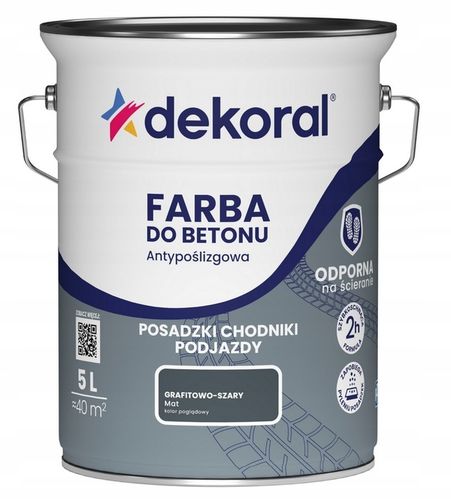 Ta wysokiej jakości farba antypoślizgowa DEKORAL AKRYLIT B w kolorze grafitowo-szarym zapewnia wyjątkową trwałość i precyzyjne krycie, idealnie dostosowane do wymagających powierzchni betonowych. Z bardzo dobrymi właściwościami kryjącymi i szybkoschnącą formułą, gwarantuje solidną ochronę przed codziennym zużyciem w halach, magazynach czy garażach, bez kompromisów w jakości wykończenia.