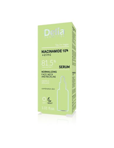 Serum to skoncentrowany preparat, charakteryzujący się większym stężeniem aktywnych składników niż zwykły krem. Serum niacynamid 10%+cynk odczuwalnie nawilża i wzmacnia, redukuje wypryski skórne, pomaga zmniejszyć ilość wydzielanego sebum, zmniejsza widoczność drobnych zmarszczek, ujednolica koloryt skóry i zmniejsza widoczność porów.