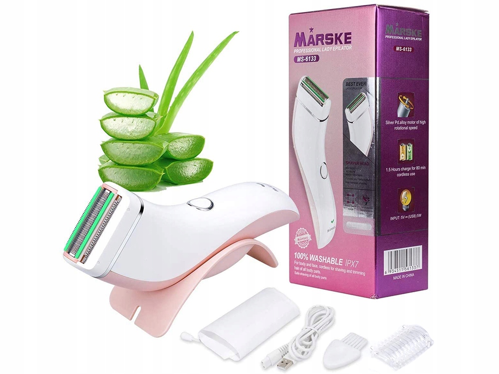 Depilator do ciała i twarzy pozwala na natychmiastowe i bezbolesne usuwanie włosów bez konieczności woskowania. Golarka posiada wymienne końcówki, które świetnie radzą sobie z nadmiernym owłosieniem ciała. Wymienne głowice pozwalają również na depilację brwi oraz usuwanie włosów z nosa i uszu. Urządzenie jest delikatne dla wszystkich rodzajów skóry, nie pozostawia podrażnień.
