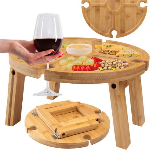 Nie zapomniano również o miłośnikach wina! Wcięcia na cztery kieliszki do wina tworzą harmonijną całość, a sam stół staje się bardziej elegancki i zapraszający. Z tą deską do serów poczujesz się jak prawdziwy gospodarz, a Twoje przyjęcia nabiorą nowego wymiaru luksusu.