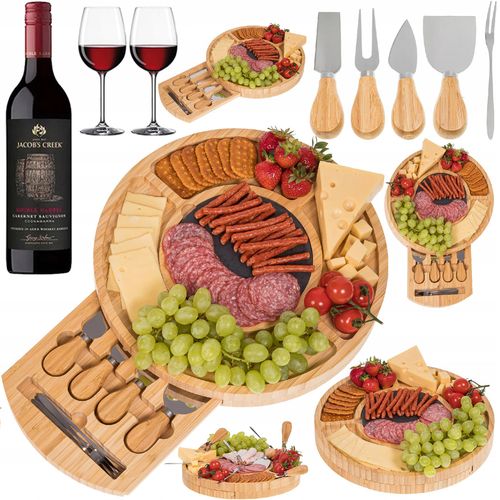 Zawiera ona 4 noże, co sprawia, że komplet jest praktyczny. Deska jest ekologicznym tworzywem naturalnym i biodegradowalnym stanowi doskonałą alternatywę dla produktów plastikowych.