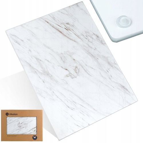 Ta szklana deska do krojenia jest nie tylko funkcjonalna, ale także niezwykle efektowna. Jej motyw białego marmuru dodaje eleganckiego akcentu każdej kuchni, a jednocześnie stanowi doskonałe uzupełnienie różnych stylów wystroju wnętrz.