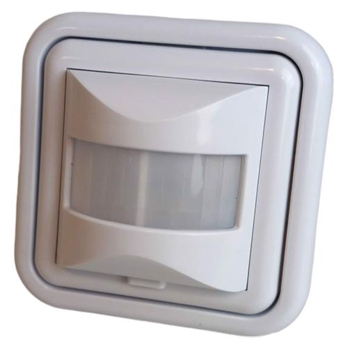 Czujnik ruchu wpuszczany w ścianę, z możliwością podłączenia na 2 i 3 przewody. Przełącznik i potencjometr ukryte za osłoną ochronną.