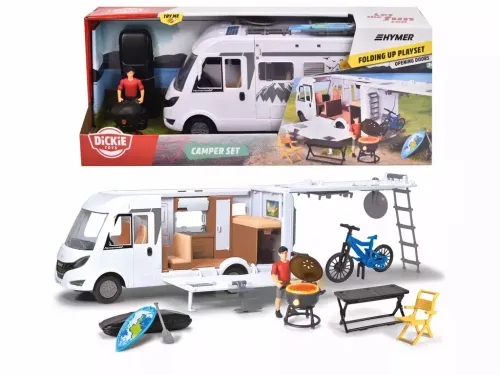 Rozpoczynamy wakacje! Wyrusz w niesamowitą podróż swoim nowoczesnym kamperem. Zabawka wykonana została w skali 1:24 i ma 30.0 cm długości. Zawartość zestawu to m.in.: • figurka, • świecący grill, • rower, • deska do wiosłowania, • stół, • krzesło, • bagażnik na rowery.