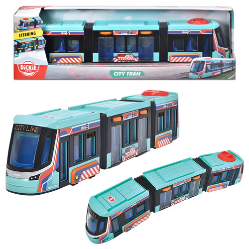 Podróżuj wygodnie po mieście oficjalnie licencjonowanym tramwajem Siemens od Dickie Toys! Tramwaj Siemens nie tylko wygląda jak prawdziwy, ale jego bogate detale i wiele funkcji zapewniają realistyczne wrażenia w zabawie. Pojazd jednocześnie rozwija zdolności motoryczne małych rączek dziecka.