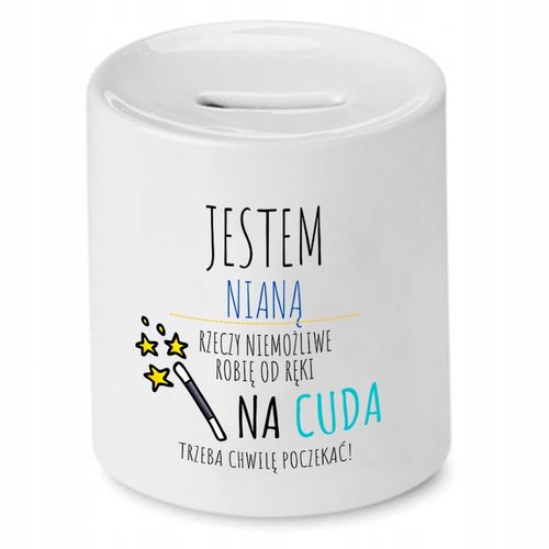 Dla Niani Opiekunki Prezent Skarbonka Jestem z Nadrukiem ze Zdjęciem to wyjątkowy produkt, który nie tylko dodaje uroku każdemu wnętrzu, ale również staje się magicznym narzędziem do spełniania marzeń! Jeśli poszukujesz prezentu, który wzruszy serce i pomoże w realizacji najskrytszych pragnień, skarbonka PoliDraw® jest idealnym rozwiązaniem!