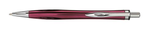 Długopis ASCOT z połyskującym korpusem, metalowym klipem, mechanizmem przyciskowym i niebieskim tuszem.