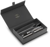 Zestaw upominkowy Parker IM Stalowy CT to doskonała propozycja dla osób ceniących sobie elegancję oraz wysoką jakość. W skład zestawu wchodzi wykwintne pióro wieczne oraz praktyczny długopis, które idealnie sprawdzą się zarówno w codziennym użytkowaniu, jak i podczas specjalnych okazji. Oba produkty wykonane zostały z trwałych materiałów, co zapewnia ich długowieczność oraz niezawodność.