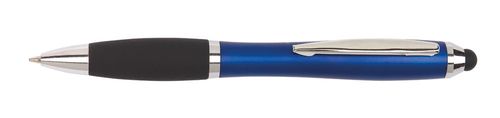 Długopis SWAY TOUCH z profilowanym korpusem, mechanizmem rotacyjnym, uchwytem pokrytym gumą i końcówką do ekranu dotykowego, z możliwością wymiany wkładu, tusz niebieski.
