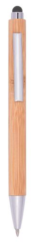 Długopis TOUCHY z korpusem pokrytym bambusem. Wyposażony w mechanizm naciskowy, z kolorową końcówką do obsługi ekranu dotykowego. Niebieski tusz.