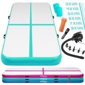 Dmuchana mata gimnastyczna to uniwersalne narzędzie treningowe odpowiednie do szerokiej gamy zajęć sportowych, takich jak gimnastyka, cheerleading, parkour, sztuki walki, sporty szkolne i inne. Istnieje również możliwość korzystania z niego w basenie. Mata ta wykonana jest z materiału dwuściennego, którego główną właściwością jest zachowanie kształtu i stabilności konstrukcji pod wpływem zewnętrznego nacisku i uderzenia.