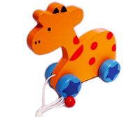 Drewniana żyrafa to zabawka na sznurku zachęcająca twoje dziecko do chodzenia i biegania. Wspomaga ćwiczenie Motoryki (tzw. Dużej), zaspokaja potrzeby ruchowe oraz uczy logiki przyczynowo- skutkowej.