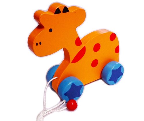 Drewniana żyrafa to zabawka na sznurku zachęcająca twoje dziecko do chodzenia i biegania. Wspomaga ćwiczenie Motoryki (tzw. Dużej), zaspokaja potrzeby ruchowe oraz uczy logiki przyczynowo- skutkowej.