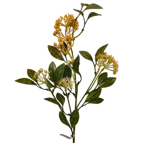 Elegancka sztuczna gałązka z delikatnymi kwiatostanami i liśćmi to idealny element do tworzenia kompozycji florystycznych, stroików oraz dekoracji wnętrz. Świetnie sprawdzi się także jako samodzielna ozdoba w wazonie, wprowadzając subtelny akcent natury do każdego pomieszczenia.