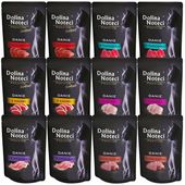 Karma Dolina Noteci dostępna jest w wielu smakach, takich jak wołowina, kurczak, tuńczyk, kaczka, królik i indyk, co pozwala zaspokoić różnorodne preferencje smakowe Twojego pupila i urozmaicić jego dietę.