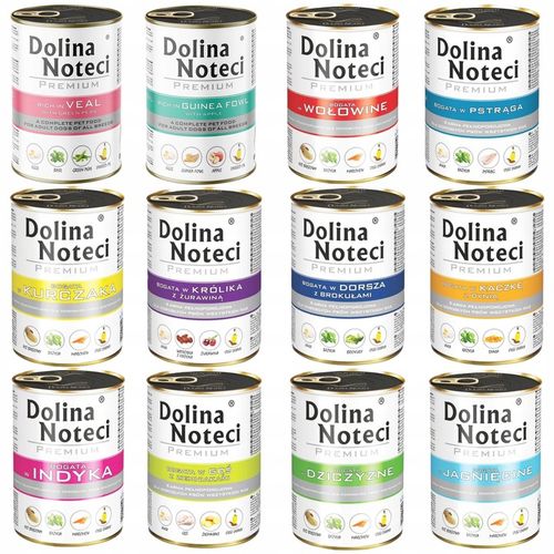 Dolina Noteci Premium oferuje szeroki wachlarz pysznych smaków, wśród których znajdziesz między innymi: cielęcinę, perliczkę, dziczyzną, dorsza, gęś, indyka, jagnięcinę, kaczkę, królika, kurczaka, pstrąga i wołowinę. Ta różnorodność pozwoli Ci zaspokoić gusta nawet najbardziej wybrednego pupila.
