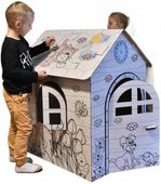Ten wyjątkowy kartonowy domek XXL o wymiarach 99 x 68 x 78 cm to prawdziwa przestrzeń do twórczej zabawy. Wykonany z wysokiej jakości tektury falistej, zapewnia nie tylko trwałość, ale również pełne bezpieczeństwo użytkowania. Dziecko może samodzielnie dekorować domek według własnych pomysłów, tworząc unikalne dzieło sztuki w trójwymiarze.