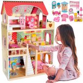 Ten monumentalny drewniany domek dla lalek o imponującej wysokości 90 cm stanowi prawdziwą willę marzeń dla małych architektów wnętrz. Dzięki 3 piętrrom, 5 pokojom oraz eleganckiemu balkonowi, oferuje nieskończone możliwości aranżacji i tworzenia własnych historii. Każdy poziom został przemyślanie zaprojektowany, zapewniając przestrzeń idealną dla 4-osobowej rodziny lalek.