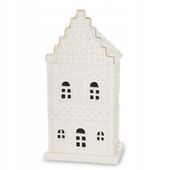 Ten uroczy domek LED, wykonany z wysokiej jakości ceramiki, nawiązuje do tradycji poprzez swoją klasyczną formę z delikatnymi okienkami. Możesz go ustawić w dowolnej konfiguracji, tworząc spersonalizowaną dekorację, która rozświetla wnętrze ciepłym, naturalnym blaskiem dzięki tealight LED – idealne rozwiązanie dla tych, którzy cenią niezawodną, trwałą ozdobę na lata.