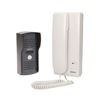 Zestaw domofonowy jednorodzinny, montaż podtynkowy lub natynkowy, daszek ochronny w zestawie, unifon posiada wbudowany zasilacz i przewód zasilający, elektrozaczep nie wymaga dodatkowego zasilania.