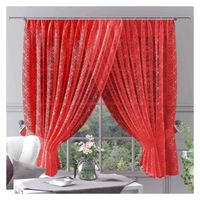 Zawsze modny kwiatowy wzór zdobniczy dodaje firance z czerwonego żakardu wyjątkowego uroku i wizualnej atrakcyjności.