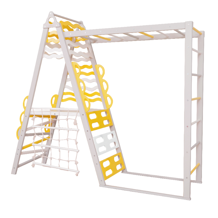 Drewniany plac zabaw dla dzieci Wave wykonany z naturalnego drewna i sklejki brzozowej wytrzymuje obciążenie do 60 kg, dzięki czemu nadaje się nie tylko do użytku indywidualnego, ale także do wspólnej zabawy.