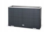 Donica wykonana z wyplatanego technorattanu. Wnętrze wykonane z blachy ocynkowanej. Listwy ozdobne wykonane z polerowanego aluminium.
