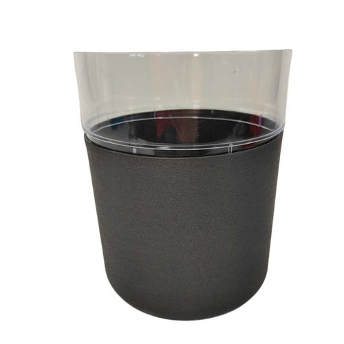 Doniczka z tworzywa sztucznego z nakładaną, plastikową osłoną.