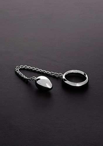 Z jednej strony masywny, ciężki Cockring, który solidnie otacza korzeń penisa, a z drugiej jajko odbytu przymocowane błyszczącym łańcuszkiem, który w przyjemny sposób masuje prostatę