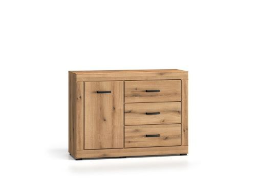 Kompaktowa komoda Dora 05 to idealny mebel do przechowywania. Za drzwiczkami kryją się dwie pojemne wnęki. Przechowasz w nich ubrania, ręczniki czy zastawę stołową. Prawą część mebla tworzą trzy szuflady, idealne na dokumenty czy domowe tekstylia. Szeroki blat będzie idealnym miejscem do wyeksponowania eleganckich wazonów lub pamiątek z podróży. Wybierz komodę Dora i zachowaj porządek w swoim wnętrzu.