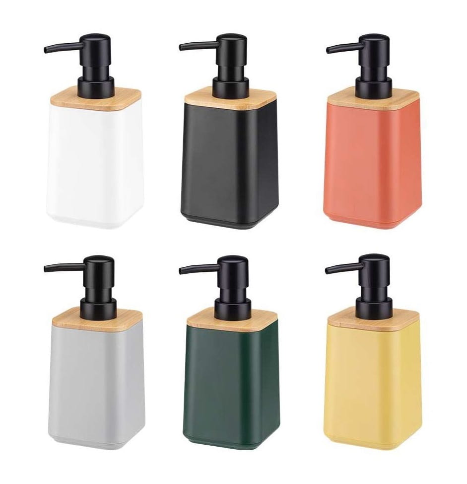 - dozownik został wykonany z kolorowego tworzywa sztucznego o wykończeniu matowym oraz naturalnego drewna bambusowego