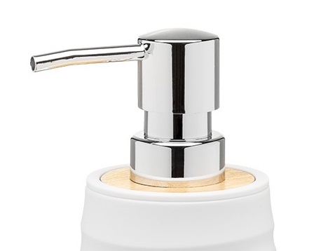 ✔️ w górnej części jest wstawka (ring) z naturalnego drewna bambusowego, co w połączeniu z białym kolorem dozownika daje niesamowity efekt wizualny