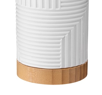 ✔️ w dolnej części jest wstawka (podstawka) z naturalnego drewna bambusowego, co w połączeniu z białym kolorem dozownika daje niesamowity efekt wizualny