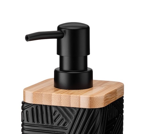 ✔️ w górnej części dozownika jest umieszczona ramka z naturalnego drewna bambusowego, co w połączeniu z czarnym kolorem dozownika daje niesamowity efekt wizualny