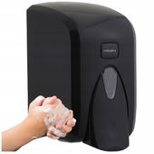 Wszystko to uzupełnia prostotę obsługi i praktyczność. Z ergonomicznym przyciskiem i zaworem niekapek, dozownik jest intuicyjny w użyciu, a jego czarny, stylowy wygląd pasuje do każdej aranżacji łazienki. To więcej niż dozownik - to klucz do higienicznego i wygodnego środowiska, dostosowany do Twoich codziennych potrzeb.