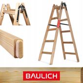 Drabina może wytrzymać obciążenie aż do 150 kg, dzięki grubemu, solidnemu profilowi bocznemu o wymiarach 61x22 cm oraz wygodnym stopniom o wymiarach 45x22 cm. Została dodatkowo wzmocniona poprzez klejenie i zszywanie stopni z podłużnicami, co zwiększa jej stabilność i trwałość.