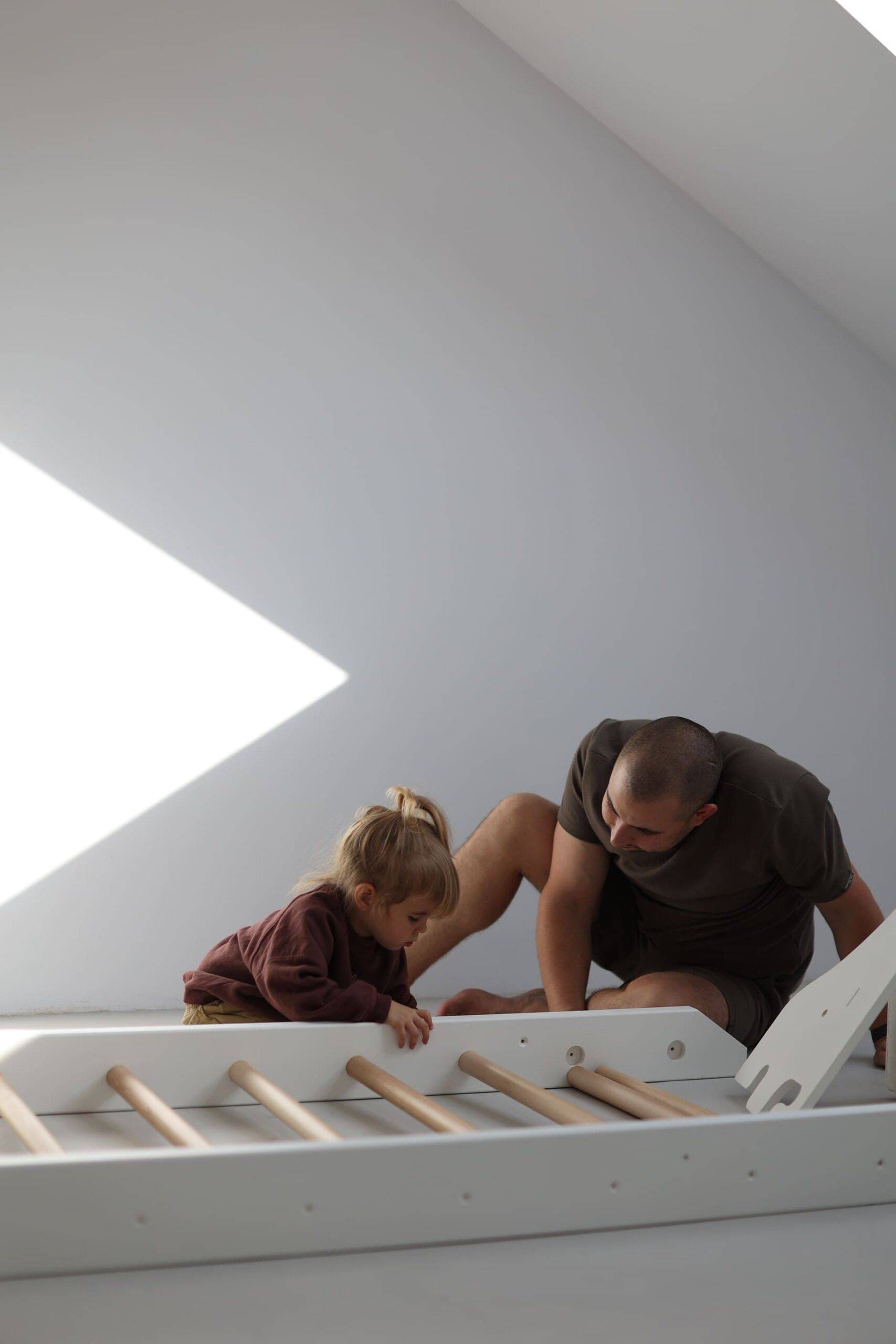 Drabinka gimnastyczna drewniana jest klasycznym zestawem gimnastycznym do ćwiczeń dla dzieci i dorosłych wykonanym z drewna sosnowego i bukowego. Drabinka rehabilitacyjna jest pokryta lakierem o podwyższonej ścieralności. Szczeble drabinki są okrągłe. Drewniane drabinki gimnastyczne cechują się bezpieczną konstrukcją opartą o wytrzymałe słupki, wykonane z drewna sosnowego. Naturalny kolor nadaje drabince estetyczny, stylowy wygląd i pozwala wtopić się w wystrój nowoczesnych pokoi dziecięcych.