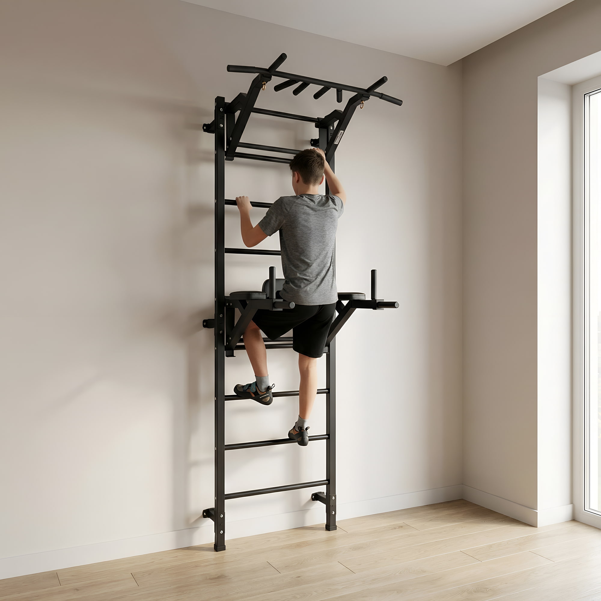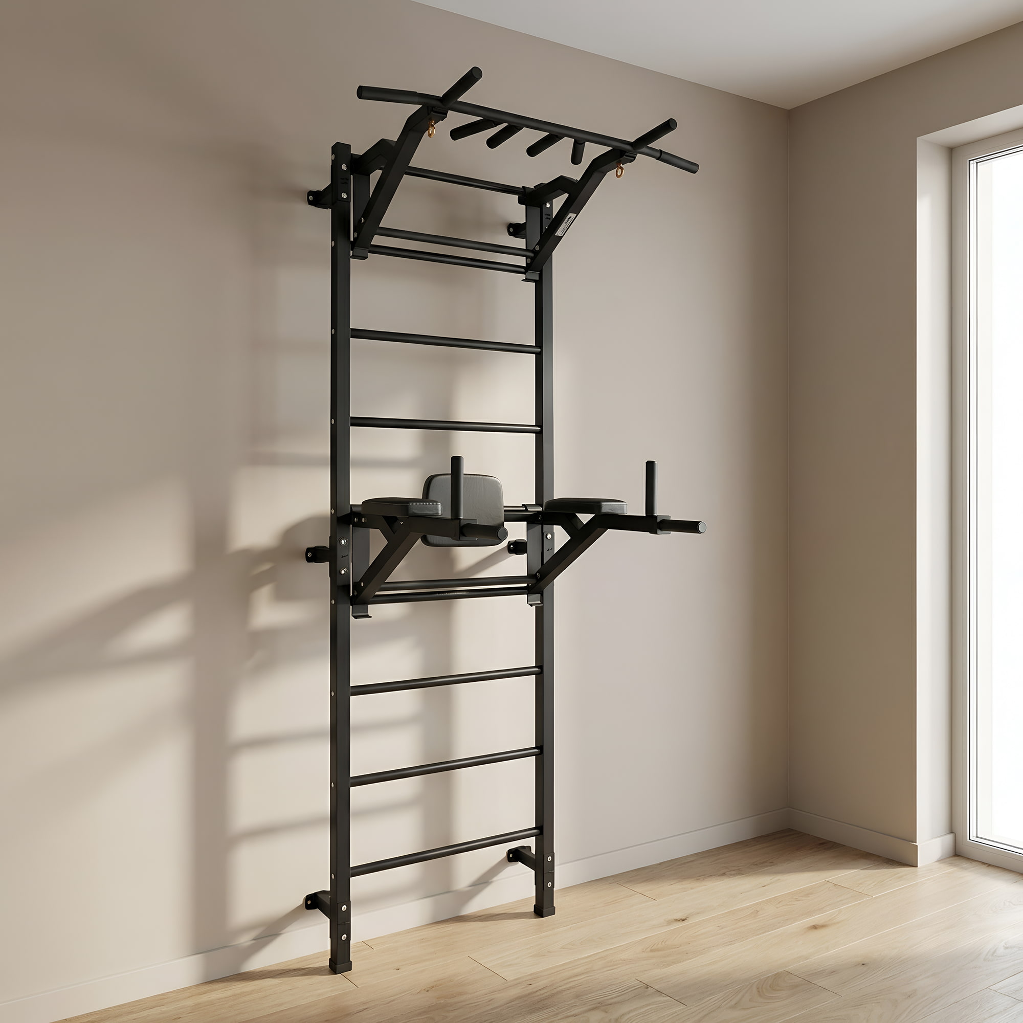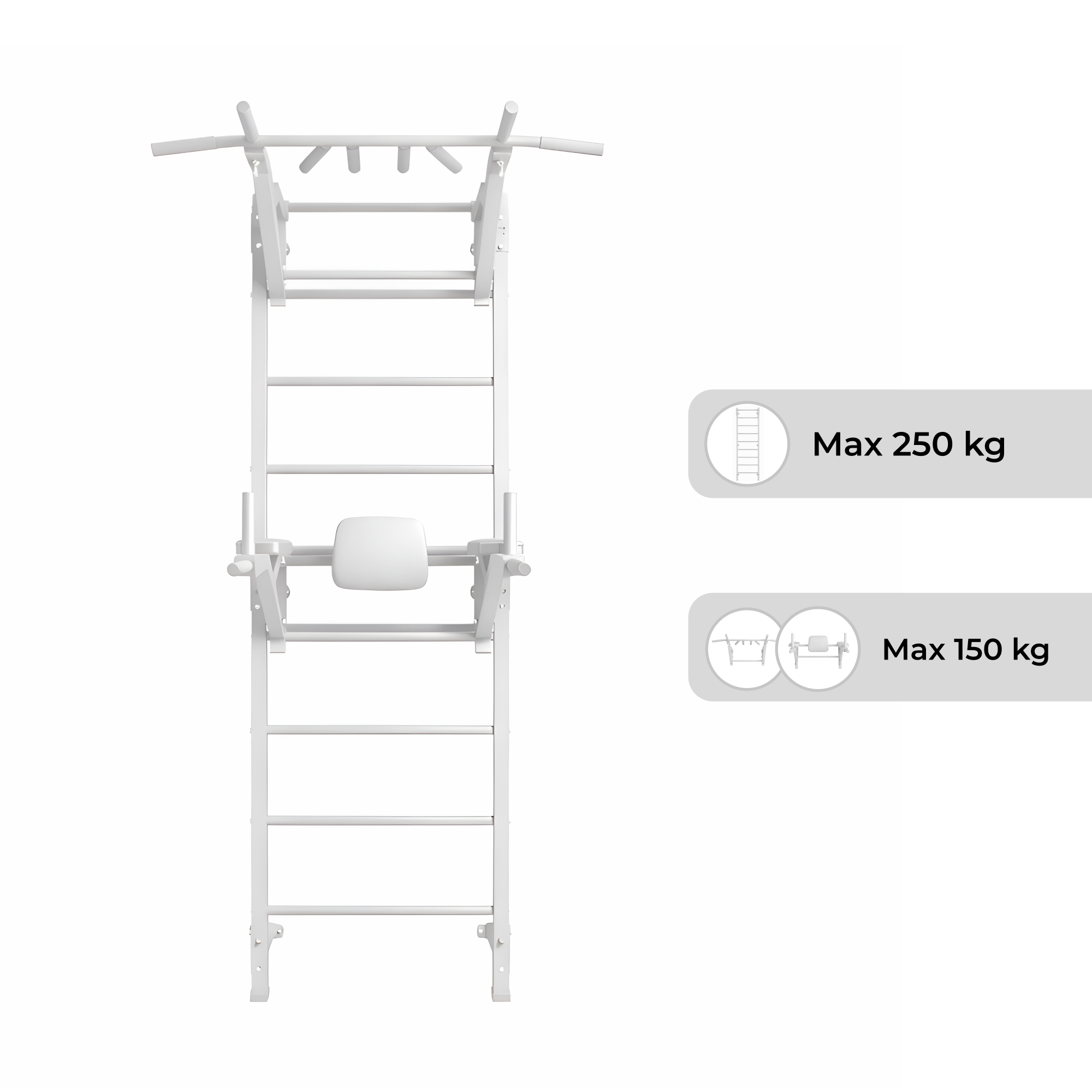 Drabinka gimnastyczna Iron to solidna, metalowa konstrukcja przeznaczona do intensywnego treningu w warunkach domowych. Wytrzymałość do 250 kg oraz możliwość montażu drążków i poręczy sprawiają, że jest idealna zarówno dla dorosłych, jak i młodzieży.