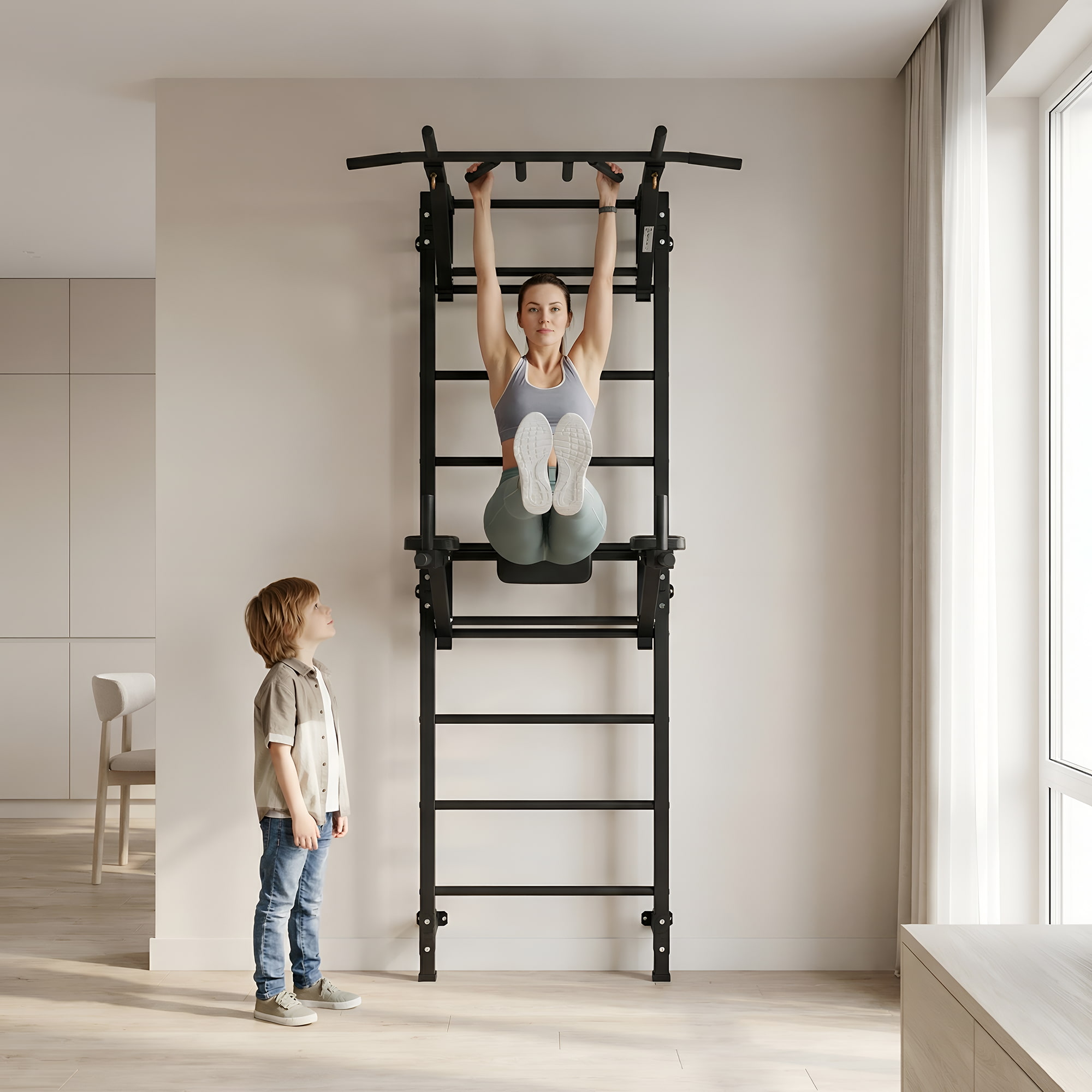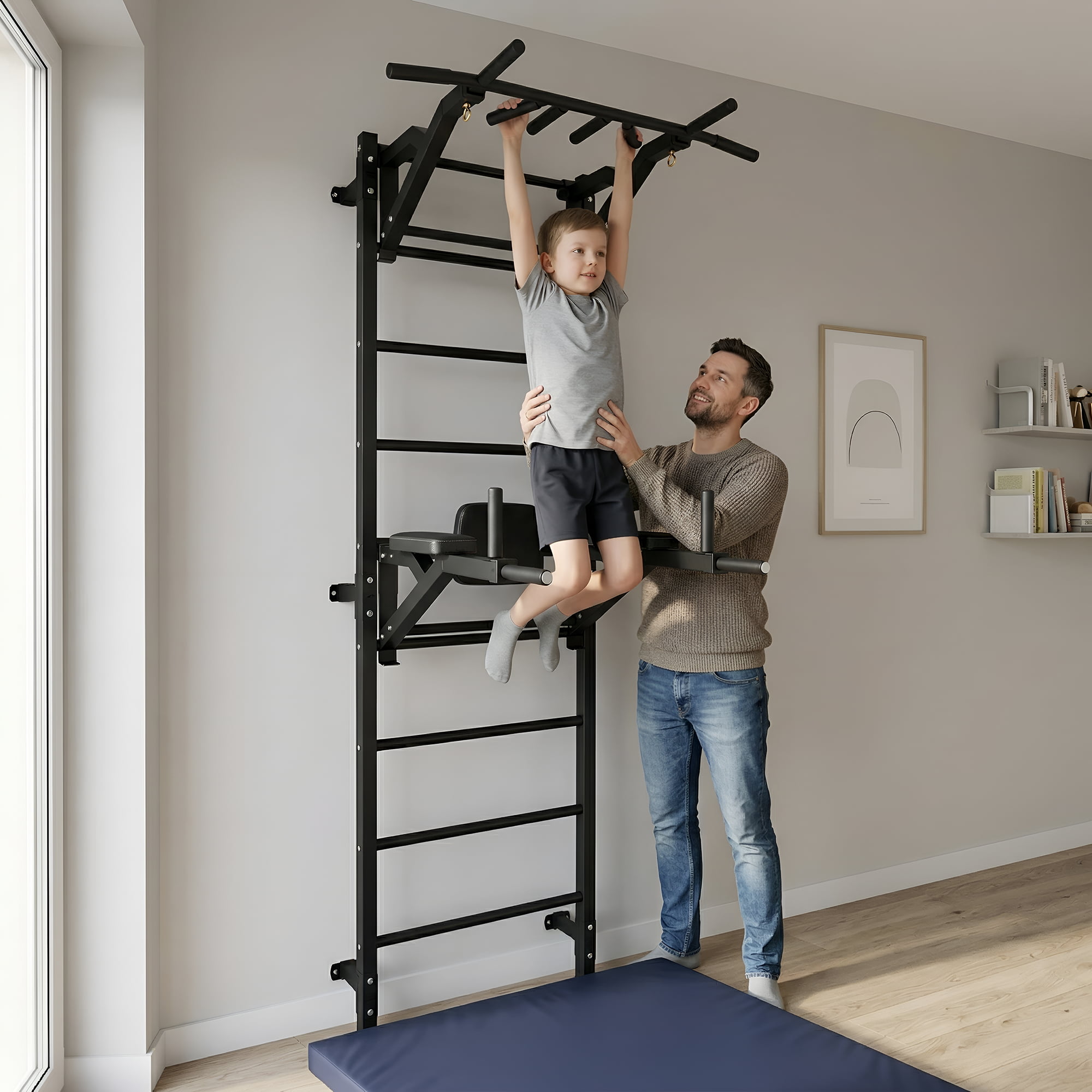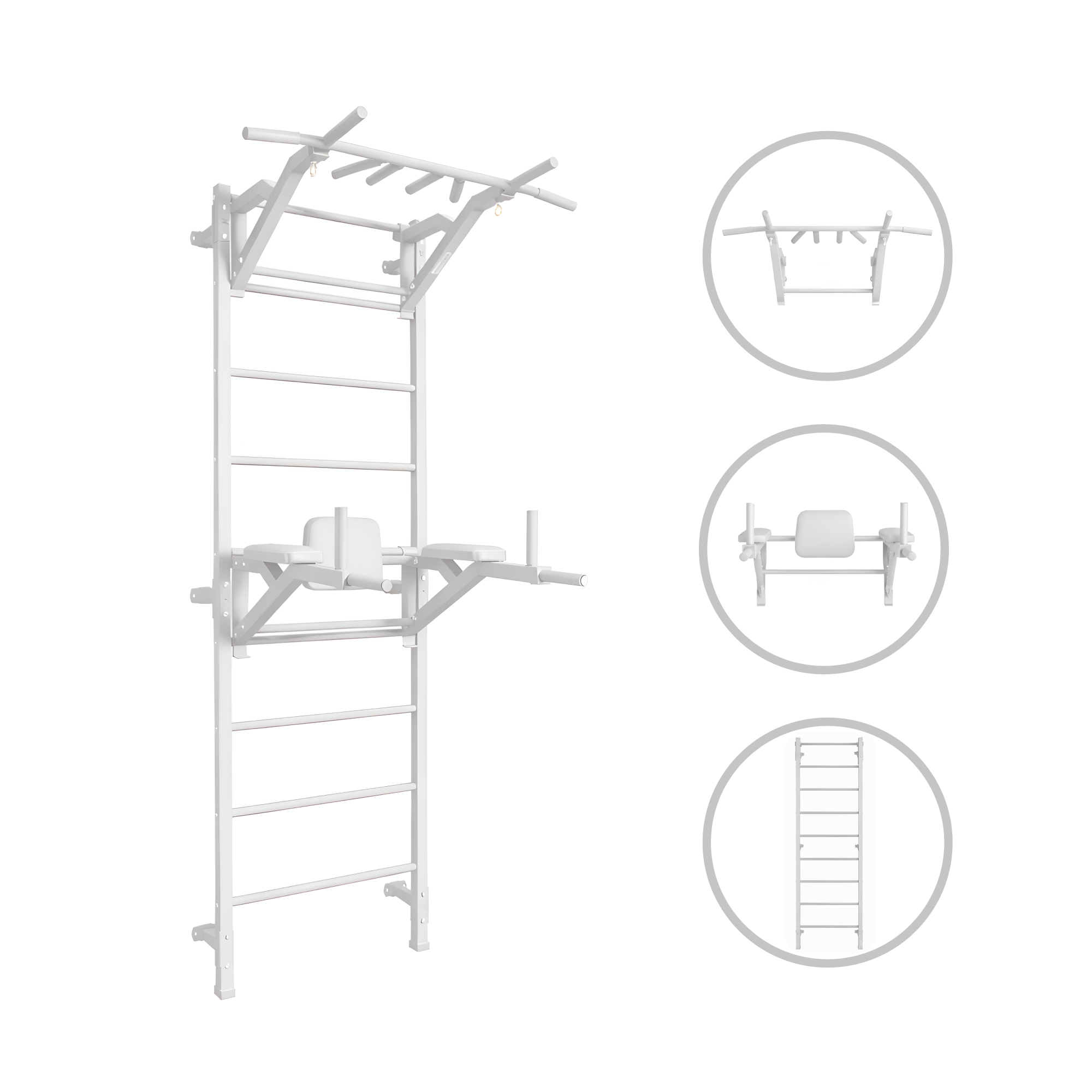 Drabinka gimnastyczna Iron to solidna, metalowa konstrukcja przeznaczona do intensywnego treningu w warunkach domowych. Wytrzymałość do 250 kg oraz możliwość montażu drążków i poręczy sprawiają, że jest idealna zarówno dla dorosłych, jak i młodzieży.