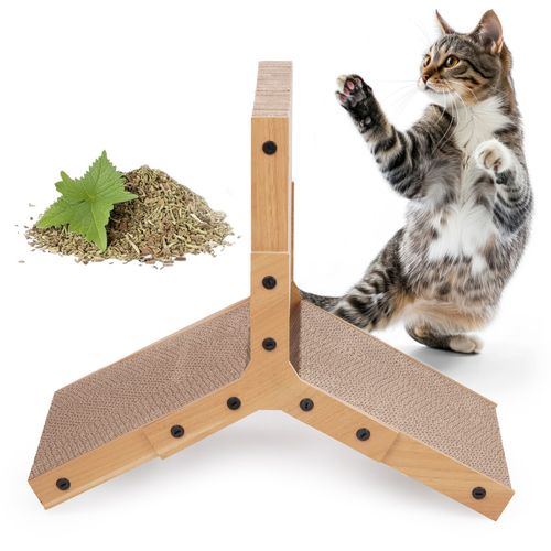 Drapak składa się z 3 grubych tektur falistych, które łatwo zmontować w trójkąt. Każdy element można używać osobno jako 3 oddzielne drapaki, co jest bardzo wygodne i praktyczne.