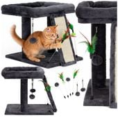 Dwupoziomowy drapak dla kota w kolorze grafitowym to konstrukcja, która łączy w sobie funkcję miejsca do zabawy i strefy relaksu. Dolna przestrzeń została zaprojektowana jako obszar aktywności kot może tam swobodnie się bawić, przeciągać i korzystać z sizalowych elementów przeznaczonych do drapania. Naturalny sizal pozwala kotu bezpiecznie ostrzyć pazury, co ogranicza ryzyko niszczenia mebli. Górna część drapaka pełni funkcję komfortowego legowiska, z którego kot może obserwować otoczenie. Podwyższona konstrukcja sprzyja odpoczynkowi, ponieważ wiele kotów czuje się bezpieczniej na wysokości. Miękka powierzchnia i stabilna podstawa sprawiają, że górna półka stanowi idealne miejsce do drzemki. Całość jest na tyle kompaktowa, że można ustawić drapak w salonie, przedpokoju lub sypialni. Dolna strefa zachęca do ruchu, a górna zapewnia spokój i wygodę. Grafitowy kolor jest elegancki i łatwo dopasowuje się do wnętrza. Drapak pomaga rozładować energię pupila, oferując mu zajęcie na dłuższy czas. Kot ma możliwość zmiany poziomu, co wspiera rozwój sprawności fizycznej. Górna część to także świetny punkt obserwacyjny, co wpływa na poczucie kontroli i komfort psychiczny zwierzaka. Drewniana struktura jest stabilna, a miękkie materiały zapewniają wygodę. To konstrukcja, która odpowiada zarówno potrzebie ruchu, jak i odpoczynku.